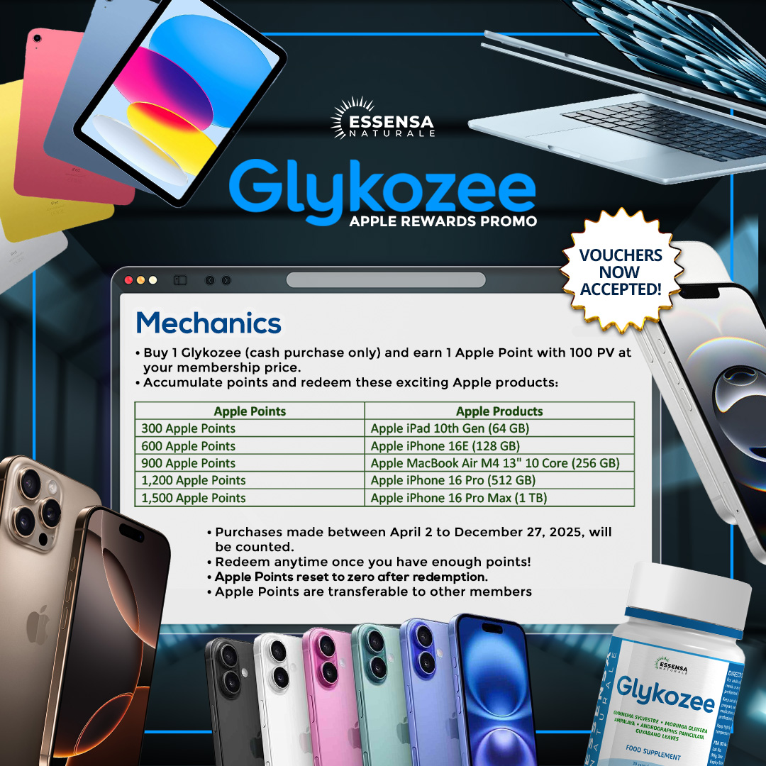 👉 Buy 1 Glykozee (cash purchase only) = 1 Apple Point with 100 PV